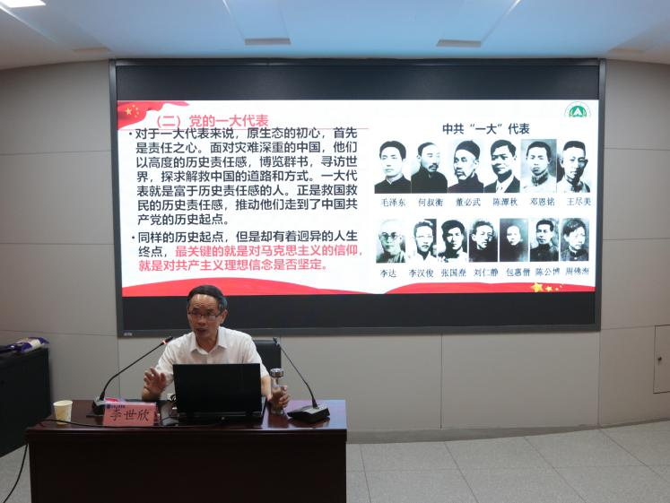 党课伊始,李世欣对所有即将毕业的同学们表示祝贺,并对大家在校期间的表现给予了充分的肯定。接着,李世欣从马克思主义的鲜明特征、中共“一大”代表们的不同人生结局感悟信念的力量、伟大领袖毛泽东主席的初心使命和精神境界、古田会议到延安整风感悟伟大的建党精神等四个方面展开详细的学习。他指出大家要努力学习马克思主义中国化基本原理,充分领悟伟大的建党精神,要把中国共产党人的精神谱系牢记于心,要始终牢记初心、坚守使命,时时刻刻对信仰保持坚定。他生动地讲述了老一辈革命家初心不改、鞠躬尽瘁,为国家民族殚精竭虑的历史故事,并教导大家要加强学习党的理论知识,在学习中涵养精神力量、鼓起奋进勇气。最后,李世欣对毕业生党员提出了殷切期望,他指出同学们要加强党性修养,学会读书学习,树立远大志向,不断超越自己,坚定理想,做新时代的奋斗者!