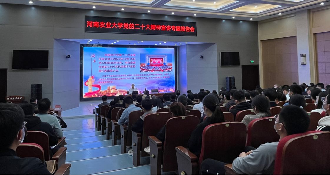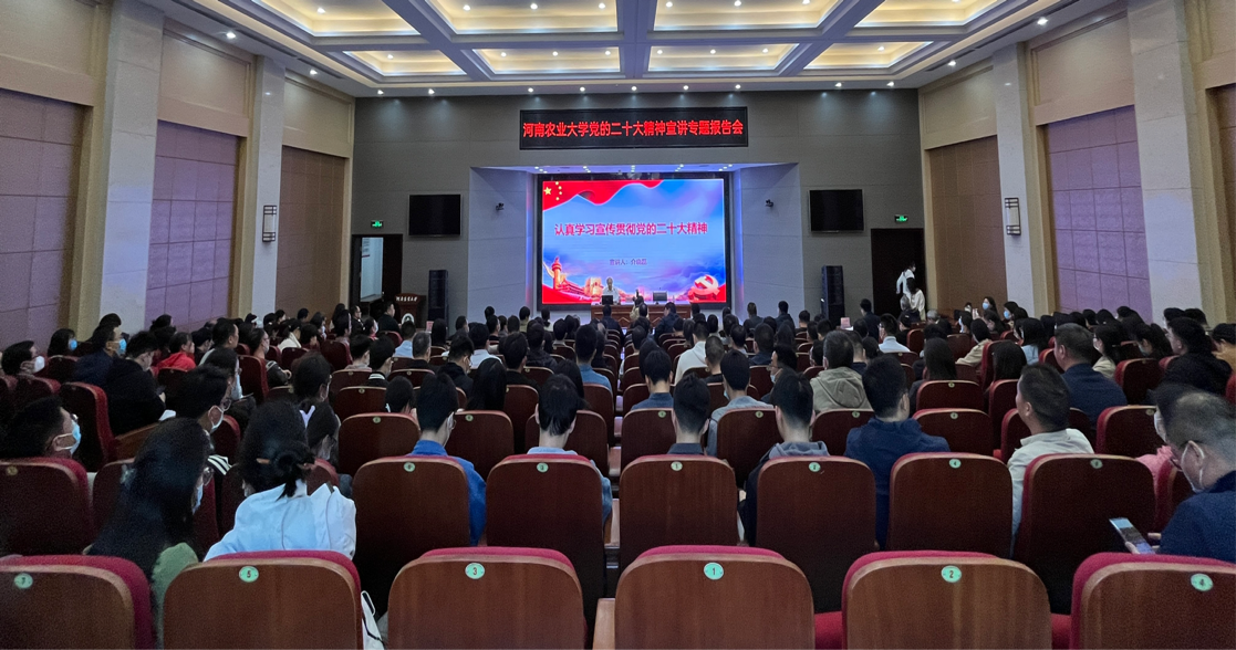 介晓磊从认真领会党的二十大主题及主要成果,过去5年的工作和新时代10年伟大变革、关于马克思主义中国化现代化、关于中国式现代化、关于全面建设社会主义现代化国家的目标任务、关于坚持党的全面领导和全面从严治党、关于应对风险挑战等方面,对党的二十大精神进行了系统阐释和深入解读。他强调,要把学习贯彻习近平总书记视察河南重要讲话精神与宣传贯彻党的二十大精神紧密结合起来,为全面建设社会主义现代化国家、全面推进中华民族伟大复兴贡献力量。要围绕习近平总书记关于高等教育的重要论述精神,立足新葡京娱乐城App
