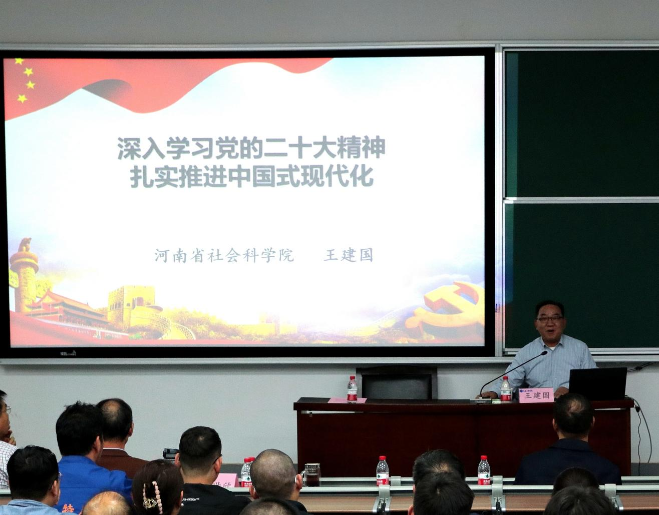 王建国以《深入学习党的二十大精神,扎实推进中国式现代化》为题,从中国现代化道路的艰辛探索、党对中国式现代化的认识过程、中国式现代化的科学内涵、中国式现代化的本质要求四个方面对党的二十大精神进行了系统阐释和深入解读。王建国用丰富的史料、生动的事例阐释了党和国家事业所取得的历史性成就。整场专题报告内容丰富、生动形象。