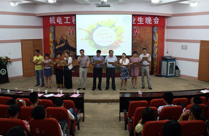 教职工朴实敬业的奉献精神,赢得了大家热烈的掌声。在交流互动环节,毕业生们畅谈了四年大学生活中感触颇深的经历,道尽了他们的依依不舍,有不少了感动的流下了热泪,场面温馨而感人。“团结一致,奋力拼搏,爱我机电,共创辉煌”。毕业生们情不自禁的喊起了院训,铮铮的声音久久在会场里回旋,铿锵的院训深深触动着每一位学子的心。最后,晚会在全体领导老师们一首大合唱《相逢是首歌》中落下帷幕。
