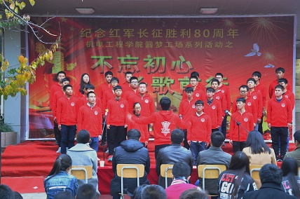 在院办楼前举办“纪念红军长征胜利八十周年——机电圆梦工场之‘不忘初心,逐梦前行’新生合唱比赛”,院党委副书记刘海涛,植保新葡京娱乐城App