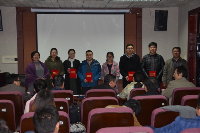 评委组从课题选择、报告内容、报告与答辩、PPT制作、现场表现五方面作出综合评判,王小飞、杨立权、张甜、常课课、房珊珊、汤亚东、李荆波7位同学同学凭借出色表现获得优秀报告奖。余永昌教授和姚新胜副教授作为导师代表对此次论坛做了点评和总结讲话,副院长刘淑杰和胡建军为研究生颁发了获奖证书,并与评委老师和参赛研究生合影留念。