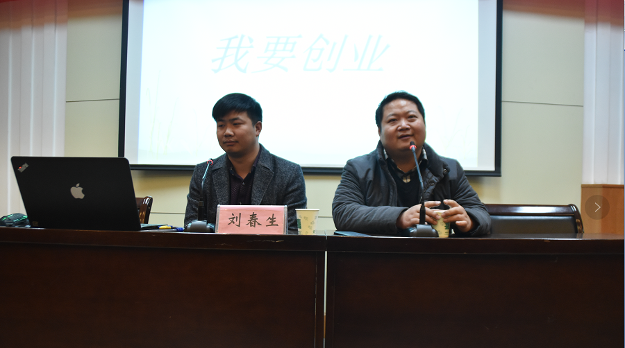 优秀毕业生、河南绿安建材有限公司董事长刘春生做报告,院团委老师徐捧丽出席会议。