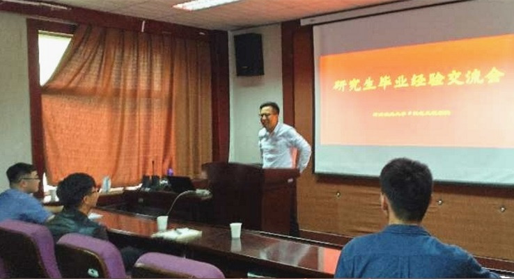 会上,优秀毕业研究生代表王龙飞、李冲、杨晨分别结合自身就业、考博、申请国外高校等的经历,从多个视角讲述了在校研究生应该如何分析自身情况,应对当前就业形势、做好职业生涯规划等方面问题。