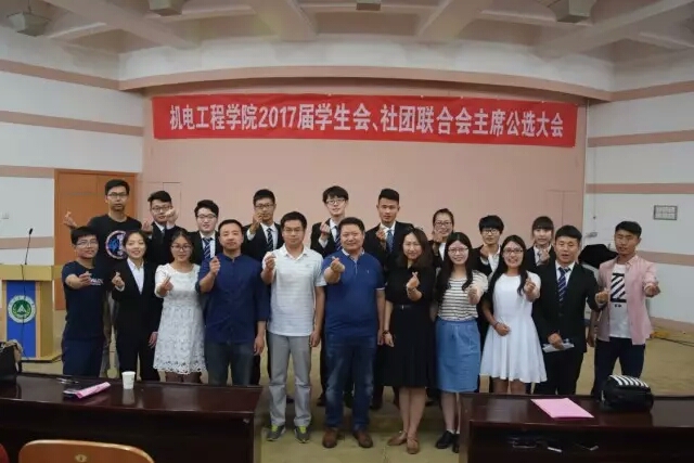 本次换届大会分为全部候选人上台见面、候选人逐一演讲、现场抽题作答、评委老师当场提问、台下观众投票等环节。会议伊始,2016届学生会主席田园作学生会工作总结,接下来,9名候选人按照抽签顺序分别从工作学习、思想生活、当选规划等方面向大家展示。评委老师以及台下观众根据选手现场表现,参考日常工作表现,纷纷给选手打分投票。