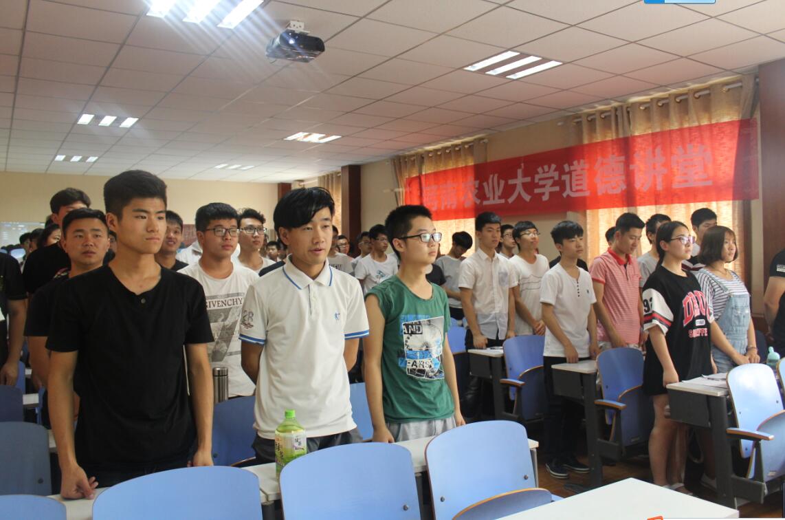 本次道德讲堂以“弘扬优良传统,重视家风家教”为主题,共分为“唱一首振奋精神的歌曲、听一段家风家教的往事、看一段感动中国的视频,诵一段传统文化的经典、表一下青春无悔的誓言”五个环节。