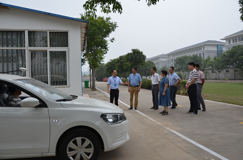 在机动车驾驶培训基地,张东鸣处长参观了驾驶训练道路、驾驶训练车辆和设备,观看智能交通驾驶实训教学系统在汽车驾驶培训中的应用,听取基地负责人对驾驶培训车辆、时间、人数、培养目标与考核等具体情况介绍。