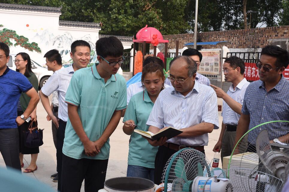 7月5日下午,校纪委书记游舸、校党委宣传部部长郭战伟、校团委书记马菲、院党委书记李世欣等老师来到冯老村委员会,看望正在社会实践中义务维修电器的同学们。