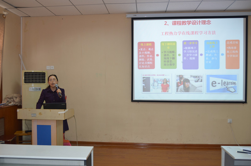 随后,省级本科教学质量工程项目——在线开放课程《工程热力学》负责人徐桂转教授作了专题报告。报告中从课程团队建设、课程教学设计理念、在线课程内容设计以及建设过程中需注意的事项等几方面详细阐述了在线开放课程建设。