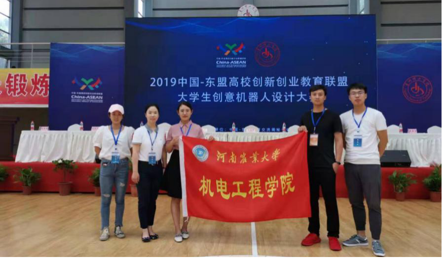 参赛队取得了优异的成绩。创新创意组比赛中,张红梅副教授指导的“全液压驱动高地隙履带无线遥控自动行走作业车”(学生:姬红、何豪、司冰权)和“小区育种测产装置”(学生:刘婉茹、李康、王洋)分别获得一等奖和优秀奖,屈哲老师指导的“电驱式蒜薹收获机”(学生:刘龙、孙雅欣、李文涛)获得二等奖,何勋副教授指导的“玉米秸秆皮穰叶分离装置”(学生:吕严柳、周正、蒋睿)获得三等奖;“全液压驱动高地隙履带无线遥控自动行走作业车”和“电驱式蒜薹收获机”参加创新能力组比赛获银奖,“小区育种测产装置”获铜奖。张红梅、何勋和屈哲3位老师获“优秀指导老师”称号,新葡京娱乐城App