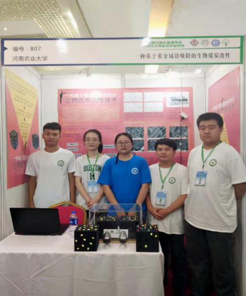 赵淑蘅老师的指导,杨佳斌、水雪楠、周小楷、尹太坤4名同学参与的作品“一种基于重金属铬吸附的生物质炭改性技术”荣获本次大赛二等奖。