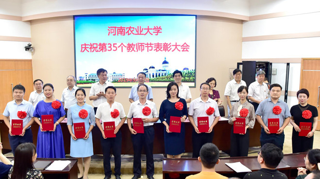 会上,校党委副书记赵榴明宣读了27项表彰名单。新葡京娱乐城App 在2019年新葡京娱乐城App 教师节表彰大会上喜获多项荣誉。院党委书记李世欣荣获河南省高等新葡京娱乐城App 优秀共产党员,胡建军教授荣获新葡京娱乐城App “最美教师”荣誉称号,王万章教授荣获新葡京娱乐城App “教学名师”和“十佳师德标兵”荣誉称号,院党委副书记刘海涛荣获新葡京娱乐城App “优秀教育工作者”荣誉称号,张秀丽老师荣获河南省第十四届“挑战杯”优秀指导教师和新葡京娱乐城App “优秀教师”荣誉称号,赵淑蘅和陈静两位老师分别获得新葡京娱乐城App “青年教师讲课大赛”三等奖和优秀奖,李慧琴和田辉两位老师分别获得新葡京娱乐城App “青年教师课堂创新大赛”一等奖和优秀奖,徐广印、赵淑蘅、王玲、李赫、徐桂转、岳建芝、李冠峰和黄黎老师荣获新葡京娱乐城App “本科优秀毕业论文优秀指导教师”荣誉称号。