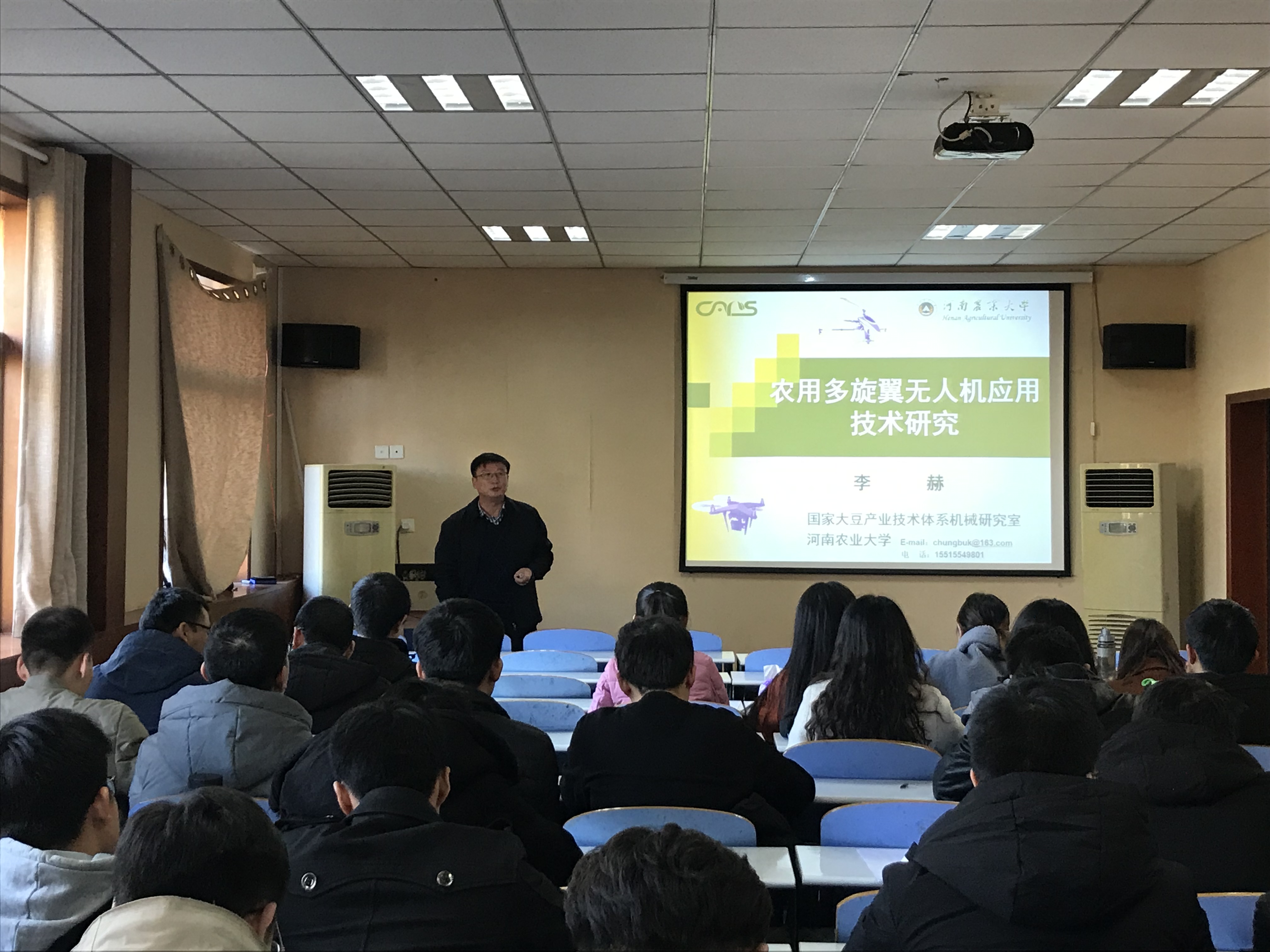 研究生做了题为“农用多旋翼无人机应用技术研究”的学术报告。