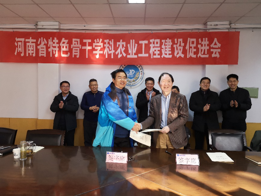学科带头人张全国教授与农业机械化与装备工程学科方向带头人王万章教授签订建设任务书