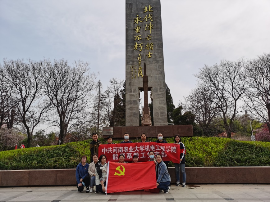 能源系教工党支部组织党员赴碧沙岗烈士纪念碑,开展了“迎建党百年——红色文化之旅”活动,向革命先烈致敬。