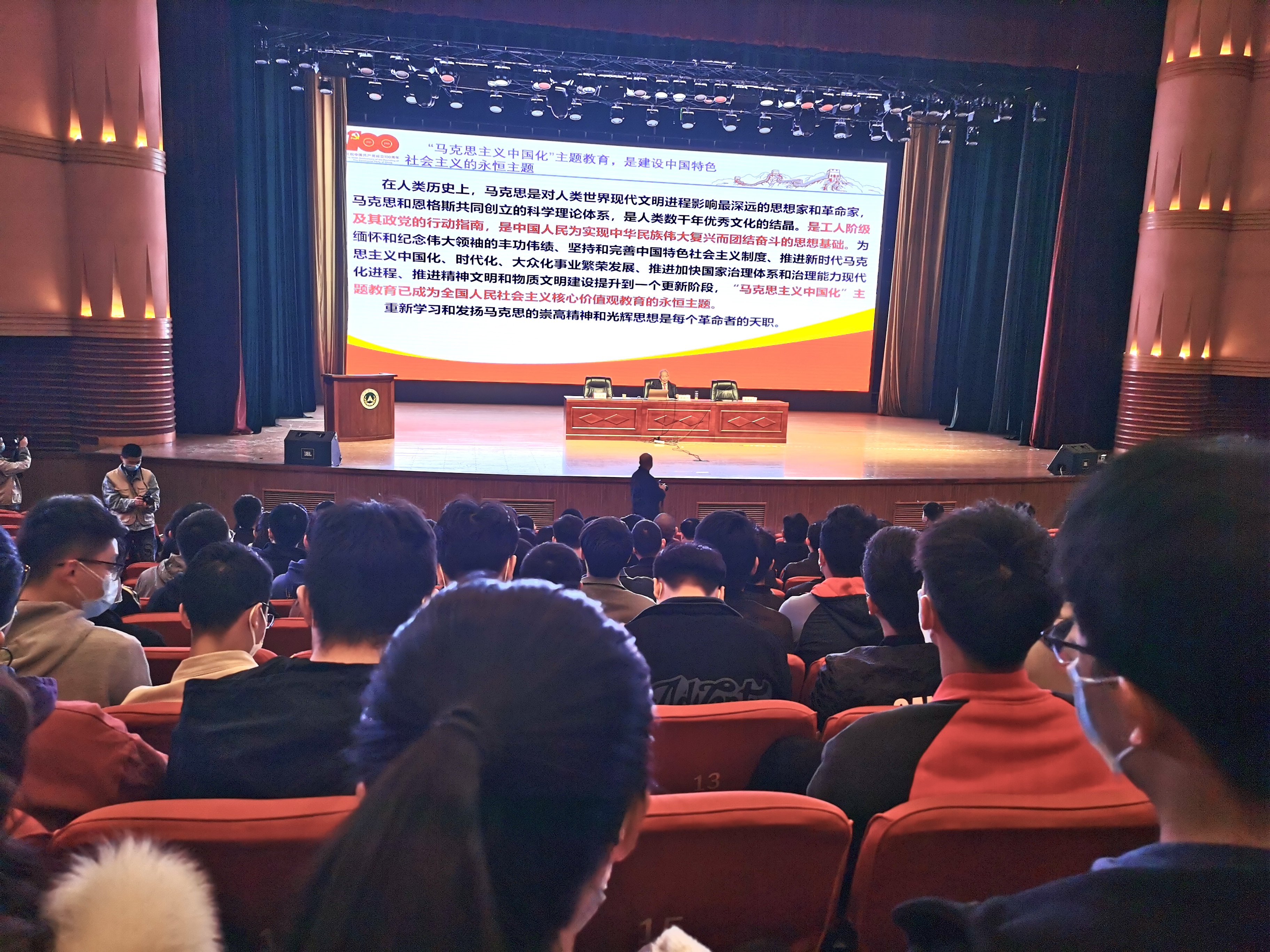 朱运河以《永远跟党走——中国共产党百年奋斗历程》为题,从新民主主义革命时期、社会主义革命和建设时期、改革开放和社会主义现代化建设新时期、习近平新时代中国特色社会主义思想发展期四个阶段论述“马克思主义中国化”主题教育是建设中国特色社会主义的永恒主题,形象生动地展现了党的百年艰苦奋斗和伟大成就的悠悠画卷。他谈到:历史是最好的教科书,也是最好的清醒剂,要积极接受党史教育的精神洗礼,学好党史,鉴往知来,深刻感悟学习共产党人的初心和使命,不断提高政治判断力、政治领悟力、政治执行力。