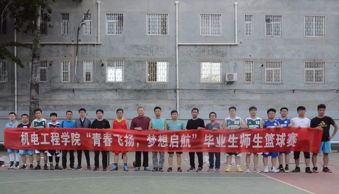 在篮球场举办“青春飞扬,梦想启航”毕业生师生篮球赛。