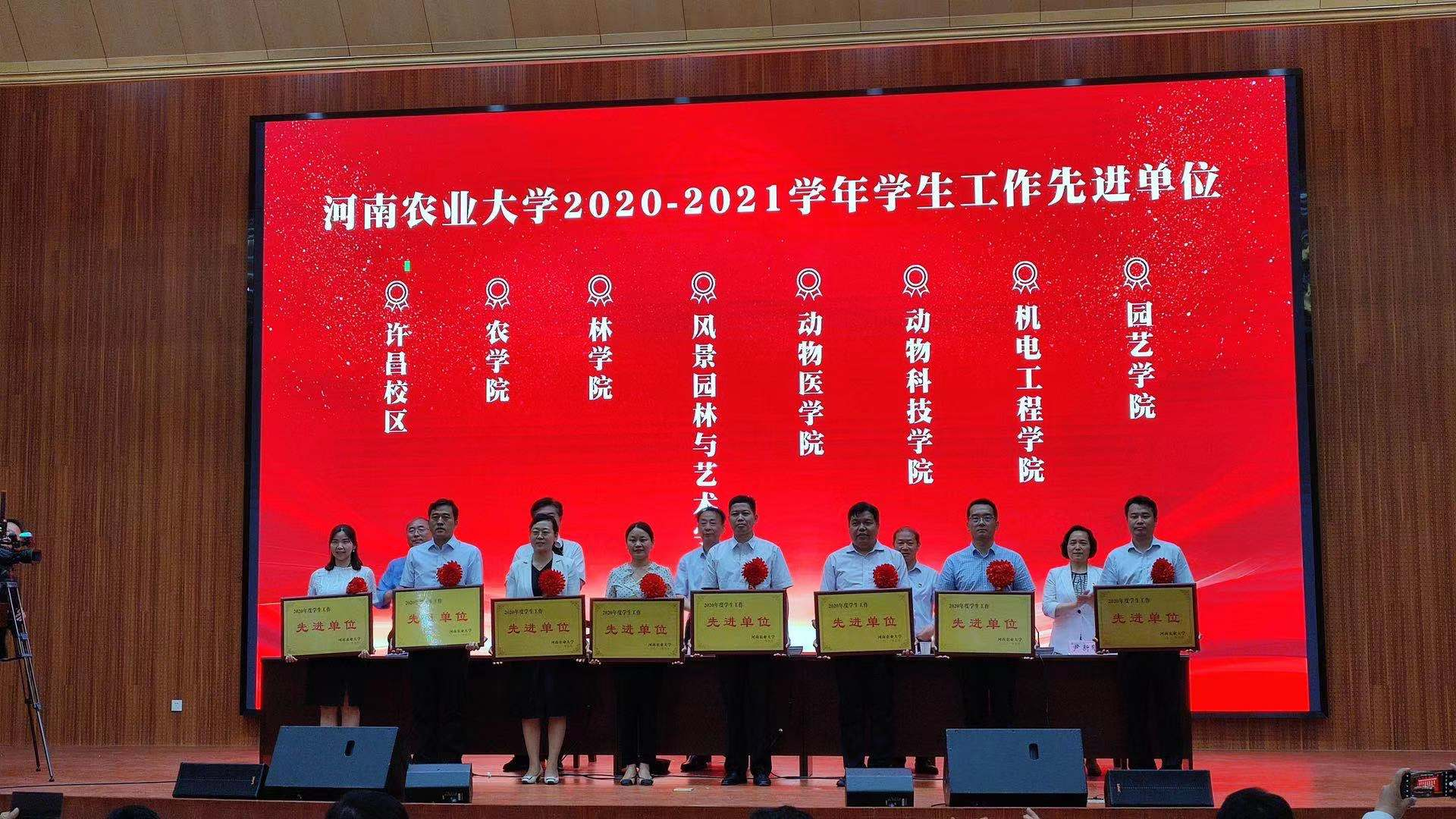 “不忘初心百年路 铸魂育人新时代”2020-2021学年学生工作表彰大会在龙子湖校区召开,校党委书记魏蒙关、校长介晓磊、校党委副书记、工会主席李成吾、副校长尹新明、副校长林同保出席大会。新葡京娱乐城App