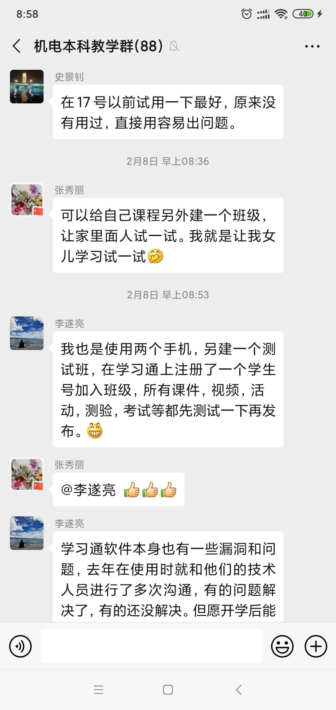 六、前期老师们利用教学群相互交流: