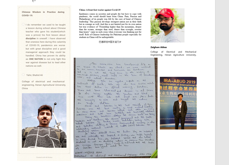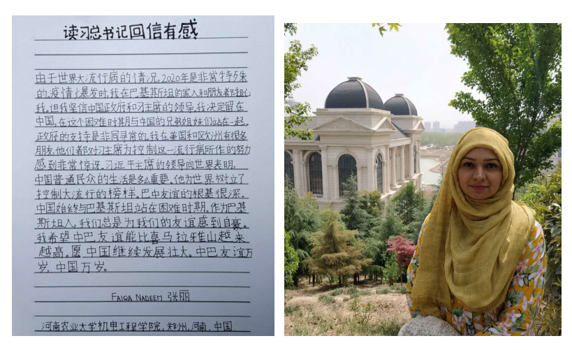 巴基斯坦籍留学生法伊卡逐字逐句的学习了习总书记给北京科技大学巴基斯坦籍留学生的回信,并用中文写下了自己的感想:2020是不平凡的,两国的感情经受住了灾难的考验,在中国的每一天,我都体会到了家的温暖,习总书记的回信更让我坚定了与中国朋友一起,携手并进的信念。愿中巴友谊长存,世界人民和平共处。