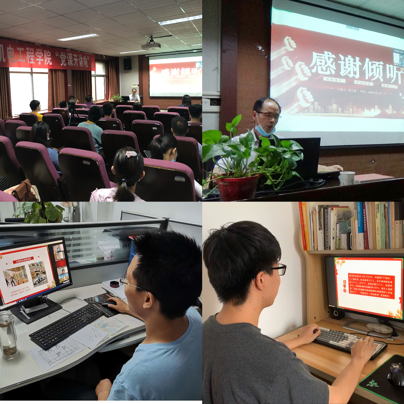 本次党课采用线上与线下相结合的形式开展,线下会场设在机电新葡京娱乐城App 学术报告厅,线上会场则通过腾讯会议系统架设在云端。部分院党委委员与20余名研究生党员代表在校内党课现场参加党课,全体教职工生通过线上视频会议系统同步收看。