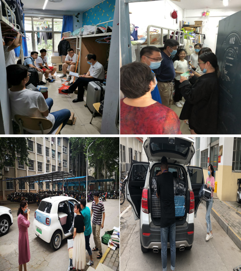 领导、各系主任及专业课老师们走进学生宿舍,同返校毕业生亲切交流,关心他们的考研及就业情况,并为他们送上美好的毕业祝福。同时在毕业生搬运邮寄行李过程中,毕业生班主任老师们和党员志愿者们纷纷用爱心推运车和私家车,热情帮助学生搬运物品,他们在楼梯上上下下,在宿舍、走廊来回穿梭,虽大汗淋漓却乐得其中,展现浓浓师生情谊。此次毕业生返校工作为新葡京娱乐城App