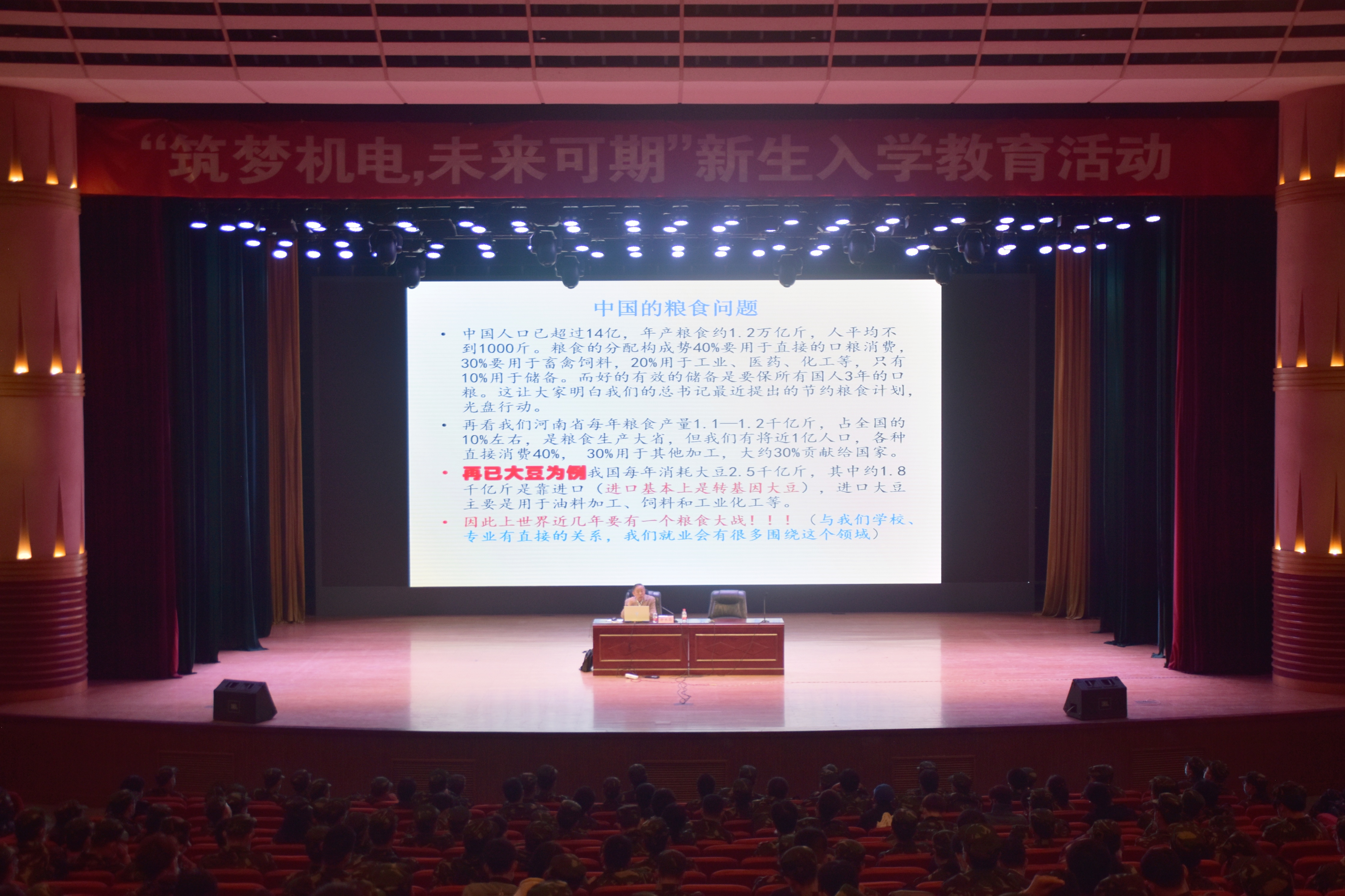 于校大礼堂举办“筑梦机电,未来可期”新生入学教育——专业方向与前景分析讲座。报告会由余永昌教授主讲,院团委老师徐捧丽主持,2020级全体新生参加此次报告会。