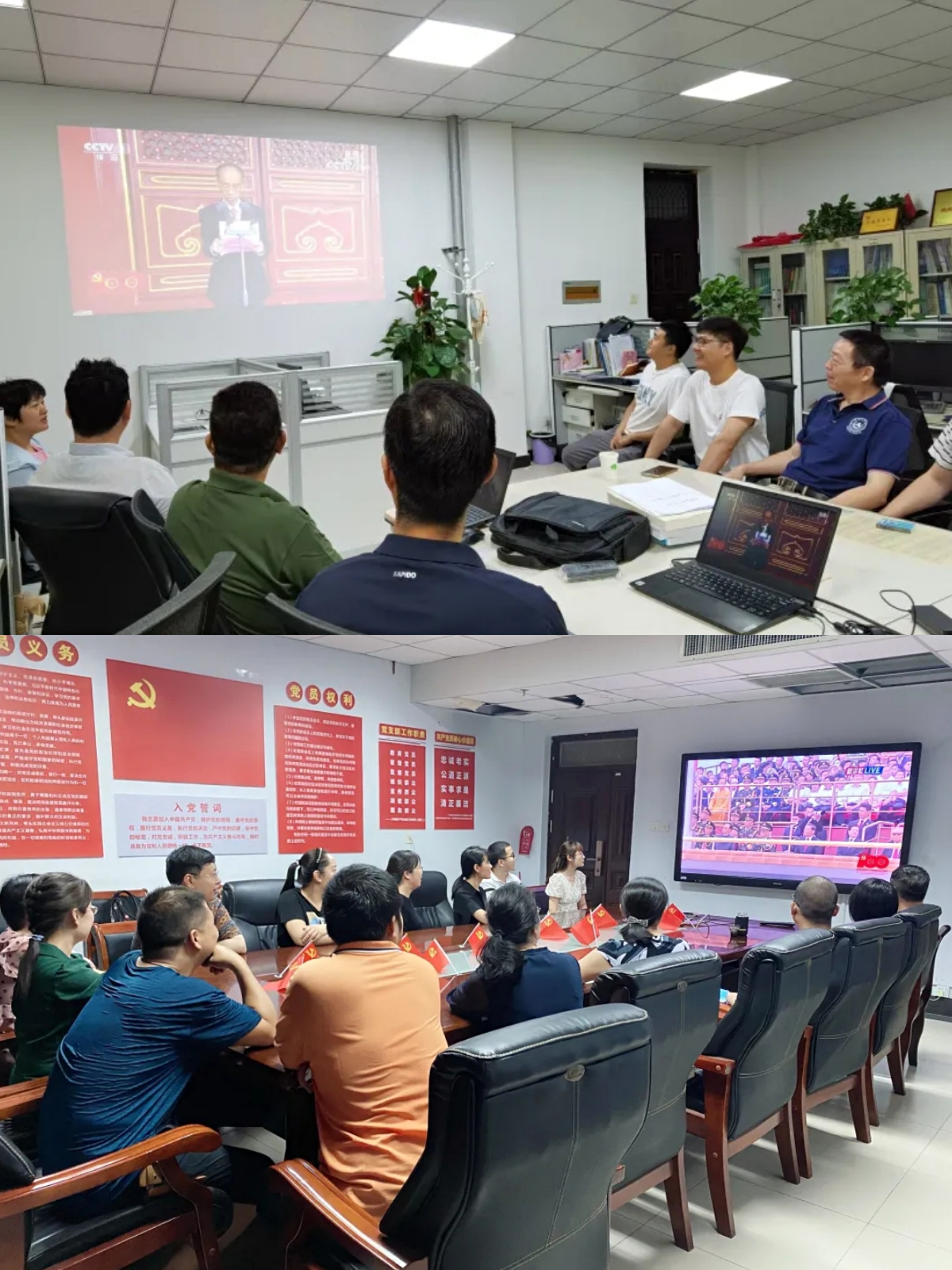 二楼会议室、报告厅集中观看,各教工支部分别集中观看。