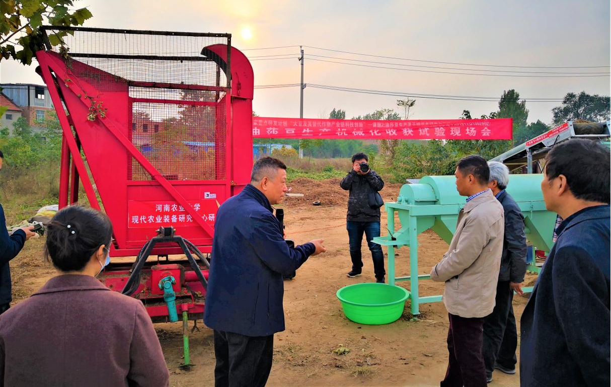 科技处副处长封洪强指出,发展油莎豆产业,对缓解我国饲料和油脂产业压力是一个具有极其深远意义的战略决策。他希望课题组能够打破收获效率低的技术瓶颈,结合油莎豆产区进行试验示范与推广,实现油莎豆绿色高产高效全程生产机械化。课题负责人王万章教授对课题组和新乡地隆药业机械有限公司共同研发的履带自走式油莎豆收获机及课题组最新自主研发的油莎豆播种机、油莎豆割草机、油莎豆干式清理机的工作原理、结构组成、作业效率等方面进行了汇报,同时课题组进行了履带自走式油莎豆收获机田间试验和油莎豆干式清理环节演示,考核专家组对油莎豆的亩产量、机器收获作业效率、损失率和清洁率等技术指标进行了测定,并进行了技术评价。通过田间现场试验证明履带自走式油莎豆收获机、油莎豆播种机、油莎豆割草机及油莎豆干式清理机均达到了预期的设计要求,各项指标均满足期望值。