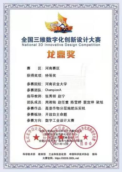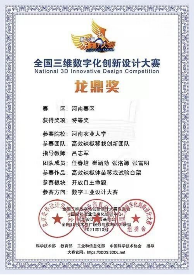 全国三维数字化创新设计大赛(简称“全国3D大赛”或3DDS),是在国家大力实施创新驱动发展战略、推动实体经济和数字经济融合发展的时代背景下开展的一项大型公益赛事,以“三维数字化”与“创新设计”为特色,突出体现科技进步和产业升级的要求,是大众创新、万众创业的具体实践。通过此次竞赛,既提高了同学们对3D数字产品进行设计制作和装配调试过程的研究能力,又体现了学生对科技创新孜孜不倦的探索和追求卓越的科学精神。(图/文 吕志军)