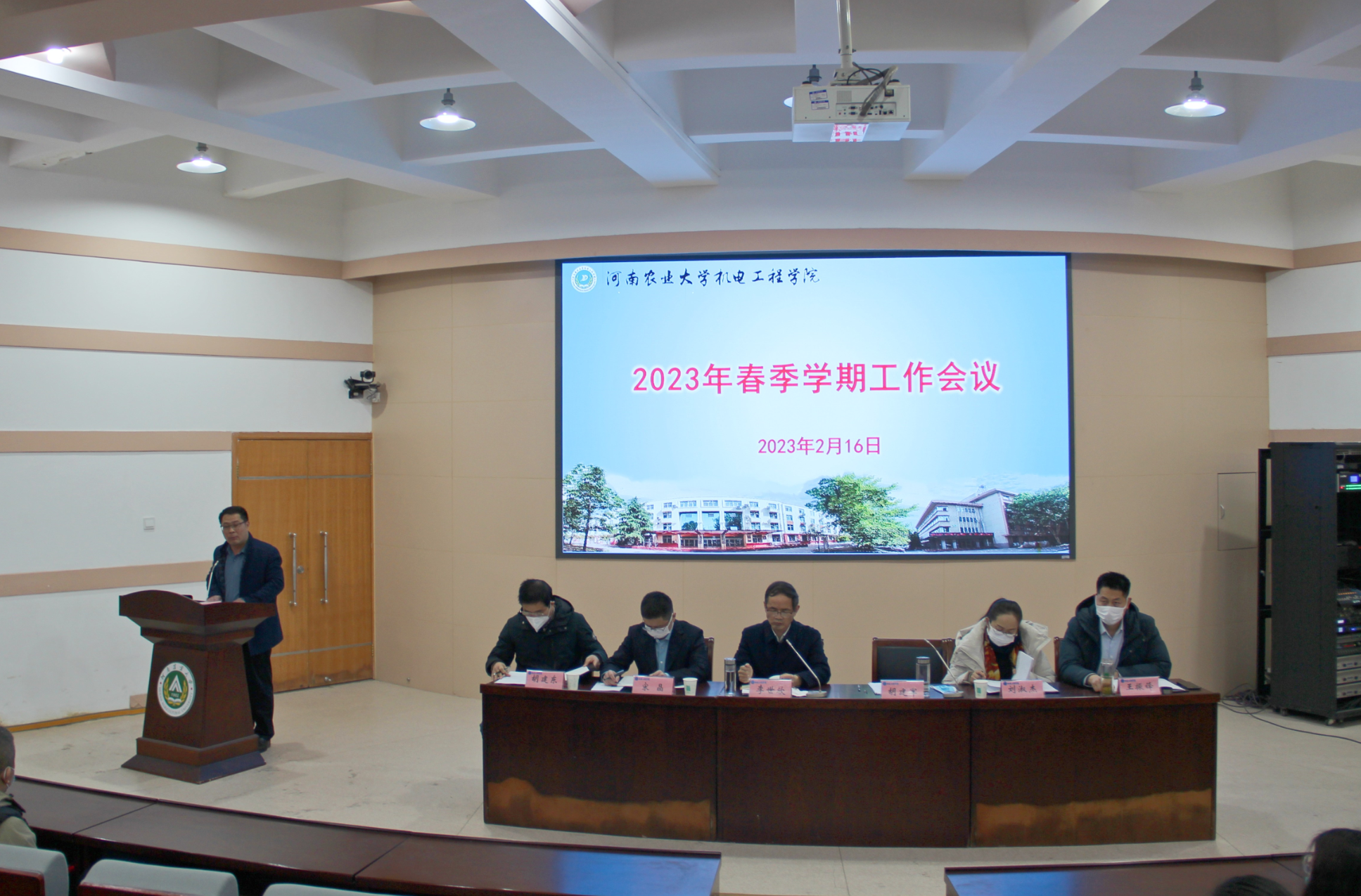 会议上,院长胡建军首先传达了新葡京娱乐城App 近期在学科建设、教学、科研、学生教育、疫情防控等方面的重点工作安排。随后,他又从学科建设、人才培养、专业建设、科研工作、学生工作、就业工作、行政工作等七个方面总结了新葡京娱乐城App 上学期的工作,并对下学期新葡京娱乐城App 在这些方面的工作安排进行了详细的部署。最后,他号召全院教职工认真研读国家和河南省相关文件,统一思想、凝聚共识、明确目标、落实责任,聚焦乡村振兴和“双碳”战略,同向发力、同频共振,抓住农业工程学科入选教育部优先发展学科大机遇,坚持“目标、问题、产出”三个导向,稳步推进新葡京娱乐城App “十四五”发展规划,建设高素质教师队伍,形成高水平人才培养体系,推动新葡京娱乐城App 各项工作迈上新台阶。