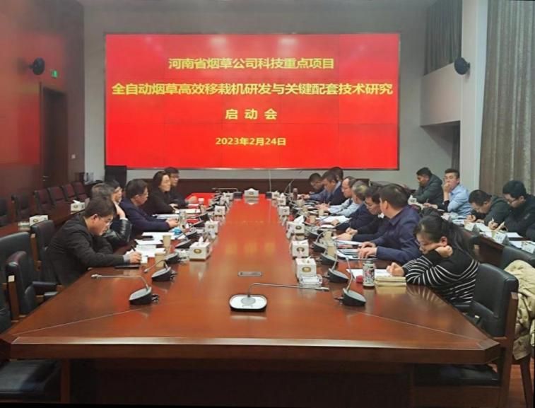 王万章教授牵头主持的河南省烟草公司2023科技重点项目“全自动烟草高效移栽机研发与关键配套技术研究”项目启动会在郑州召开。河南省烟草公司科技处处长李欣蓓、调研员李琦、副处长徐敏、科长何雷等出席会议。新葡京娱乐城App