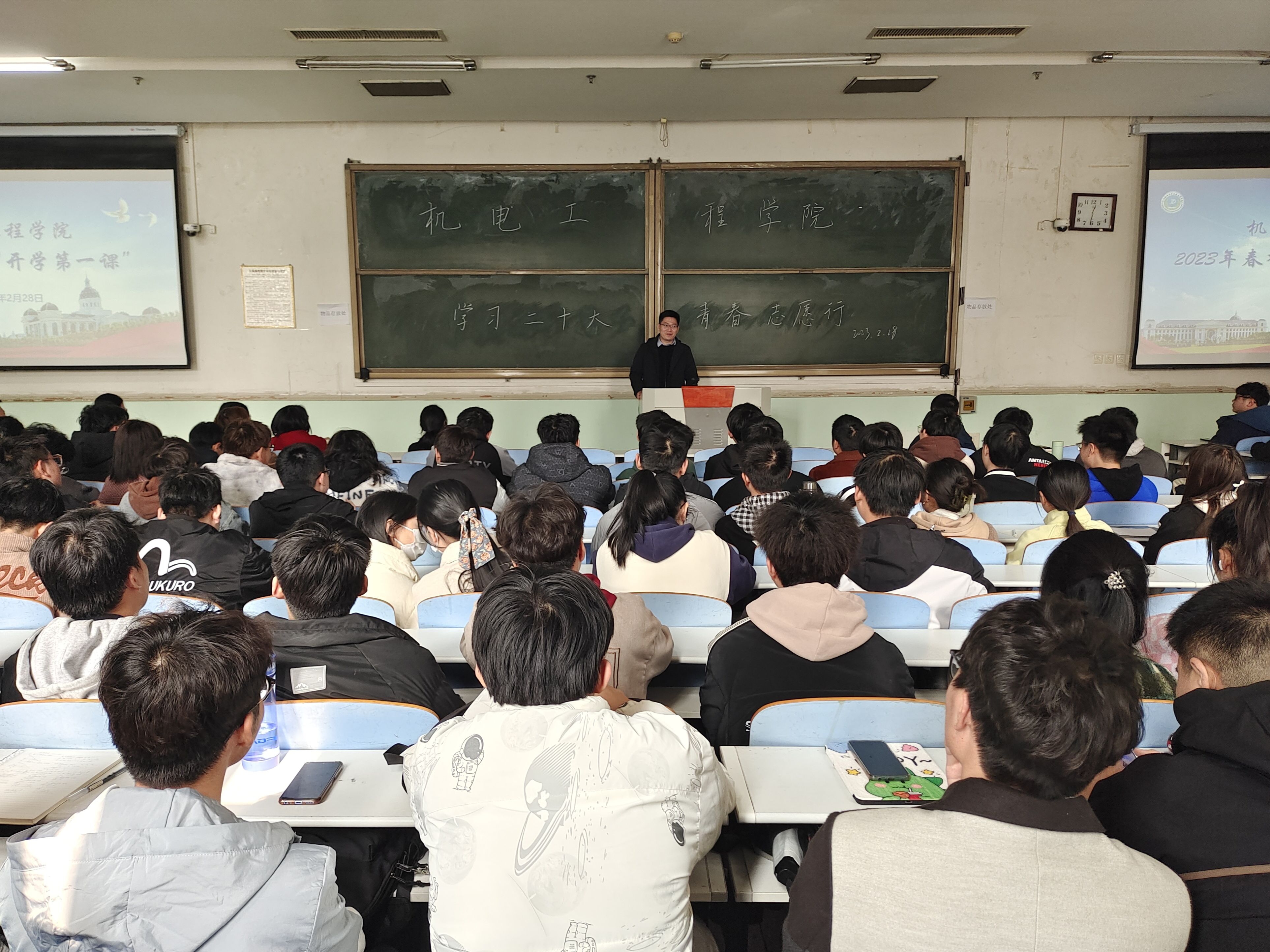 为全面落实习近平总书记关于志愿服务系列重要指示精神,引领新葡京娱乐城App 广大青年凝聚志愿服务力量,2月28日中午,新葡京娱乐城App 于文化路校区工程楼101教室组织开展“学习二十大,青春志愿行”主题团日活动动员大会。院党委副书记宋晶,团委书记黄笑,团委副书记徐捧丽,年级辅导员胡亭亭、王晓楠、孙改革出席本次会议,院学生组织主要成员、各年级班长支书参与本次会议。
