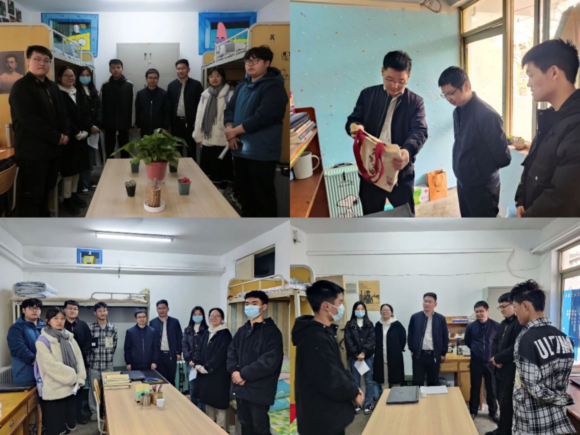 党委副书记宋晶,院团委书记黄笑,团委副书记胡亭亭,年级辅导员孙改革深入学生宿舍进行现场参观点评,并与学生进行亲切交流,了解了学生的日常生活情况且对学生遇到的问题作出建议。参观过程中,每个宿舍干净整洁又不失风采,悉心布置的装饰别有一番风味,充分体现了同学们对良好生活环境的向往与热情。