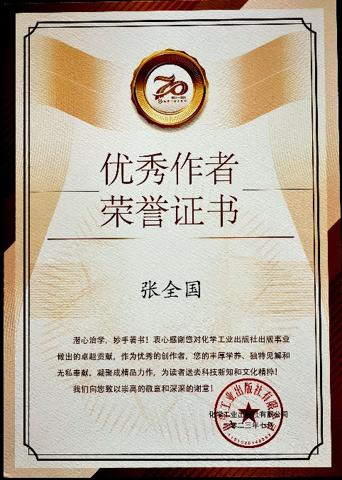 张全国教授的专著入选化学工业出版社成立70周年百佳优秀出版物