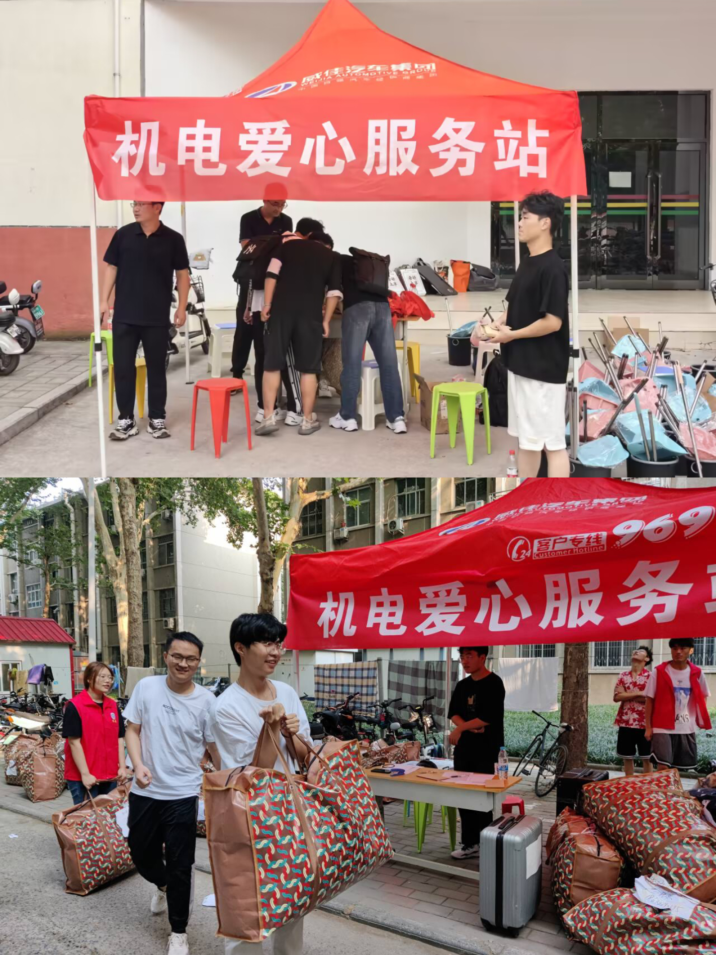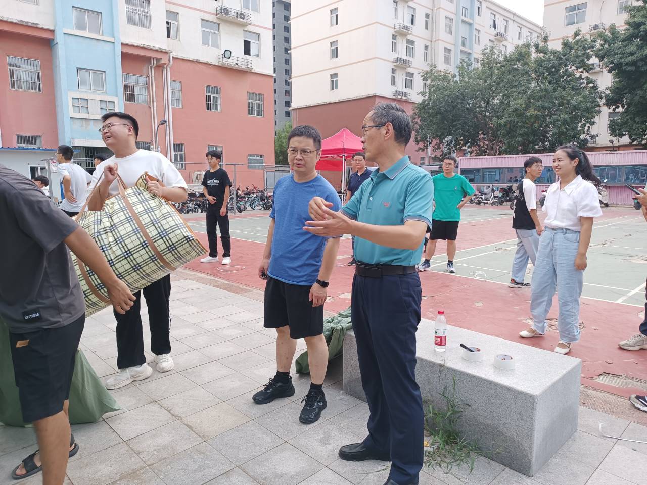 就开始部署执行搬迁工作,工作人员干劲十足、团结协作,在涉及搬迁的二区学生公寓、桃李园学生公寓、校本部4号楼、校本部5号楼、校本部24号楼、校本部27号楼等6个宿舍区前分别设立爱心服务站,为同学们照看运送物资、收发钥匙、提供矿泉水等。