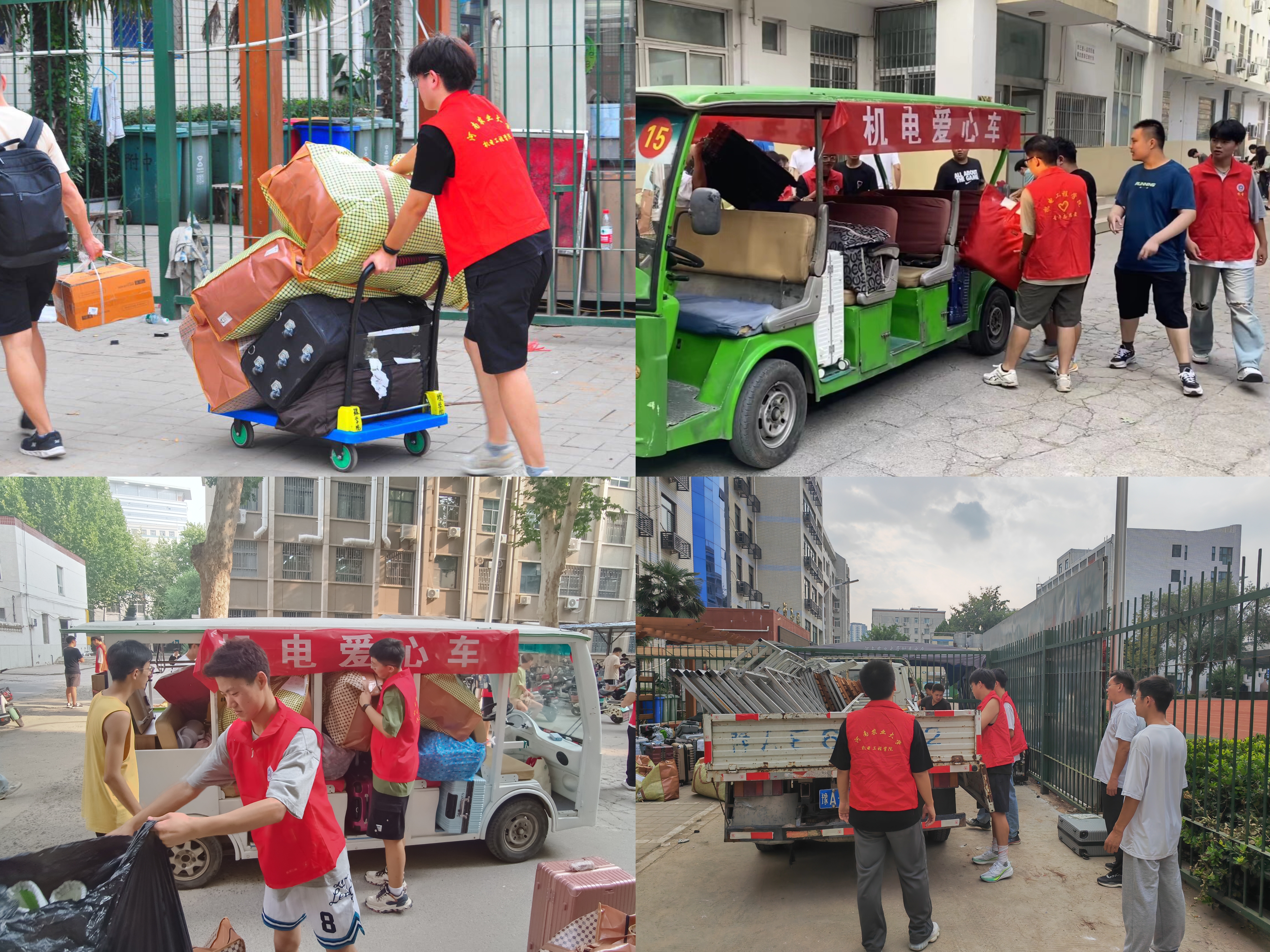 同学们热情高涨,不惧骄阳,将已经打包好的行李逐个搬往楼下指定存放点,辅导员、班主任、班团干部、志愿者齐上阵,大家齐心协力,携手抬行李,手拉小推车、骑上电动车、抬上公交车、坐上摆渡车,匆匆往返穿梭于新老宿舍楼宇之间,从晨光熹微到满天繁星,他们忙碌的身影勾勒出校园里最靓丽的风景线。