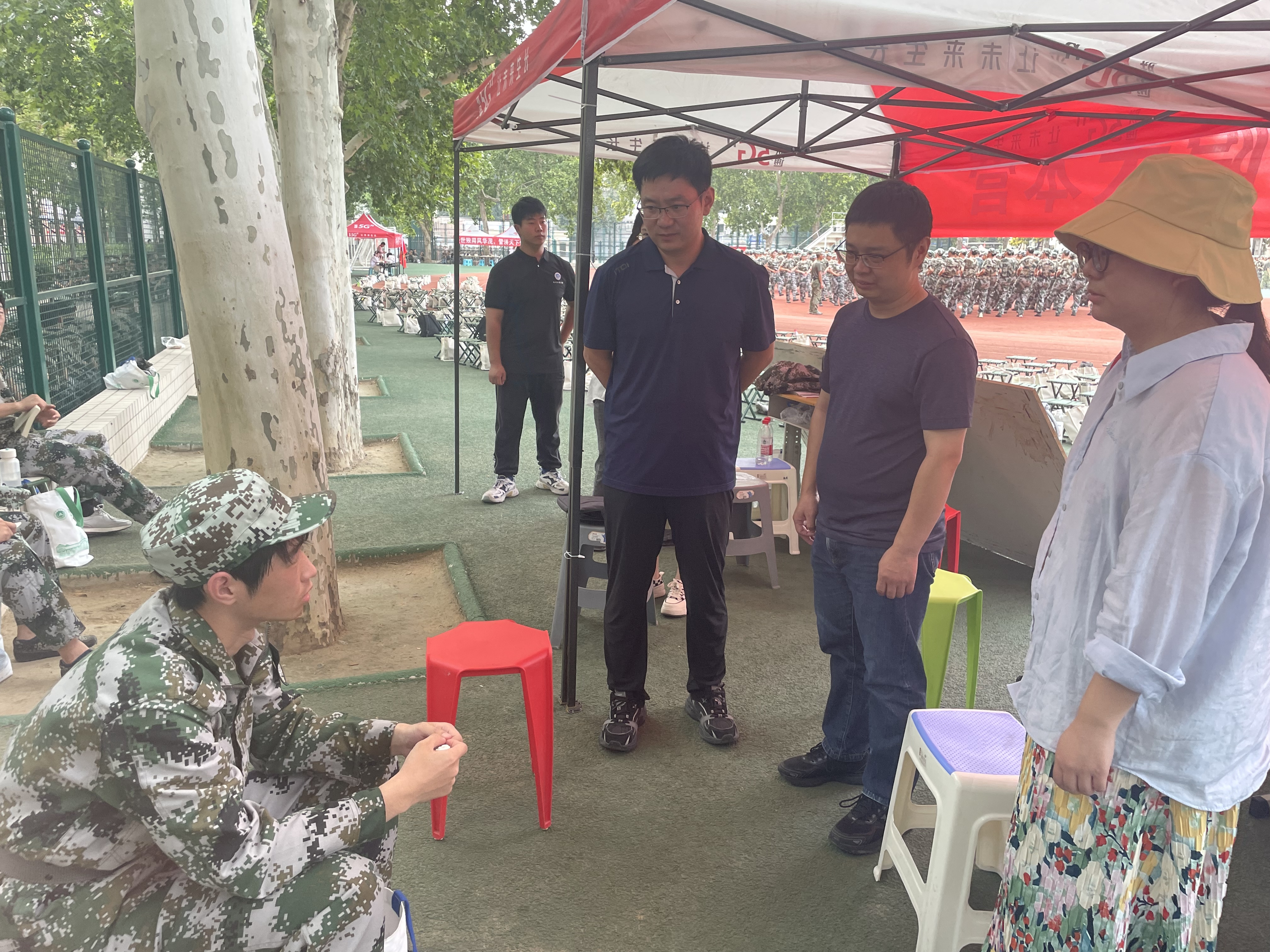 23级新生军训场地,亲切慰问23级军训新生及军训教官。
