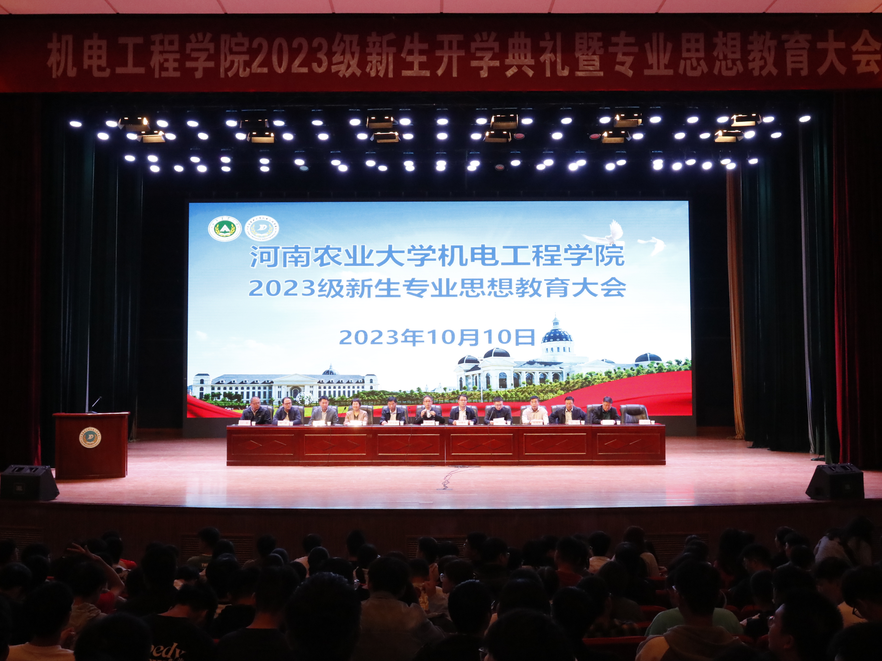 党委书记李世欣,院长胡建军,院党委副书记宋晶,副院长刘淑杰、胡建东、王振锋,各系主任出席此次会议,团委书记黄笑、辅导员老师及2023级全体新生参加此次会议。