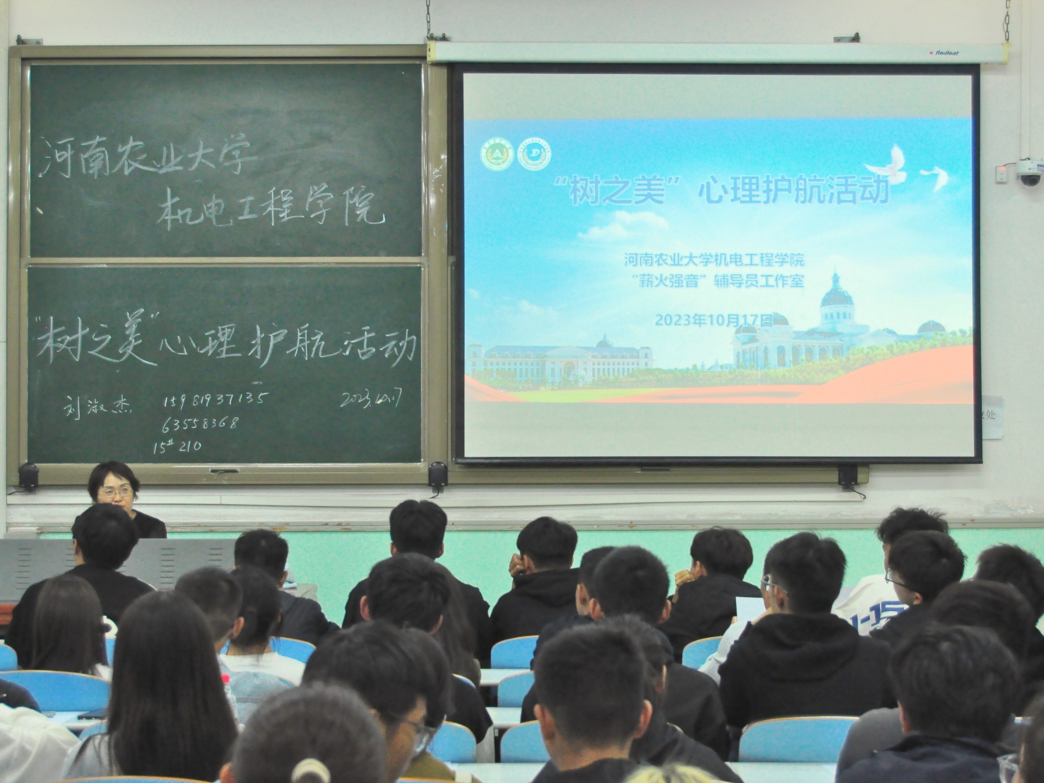 10月17日晚,新葡京娱乐城App 于工程楼206教室开展“树之美”心理护航活动。新葡京娱乐城App 2023年级辅导员以及全体新生参加,此次活动由新葡京娱乐城App 副院长刘淑杰主持。