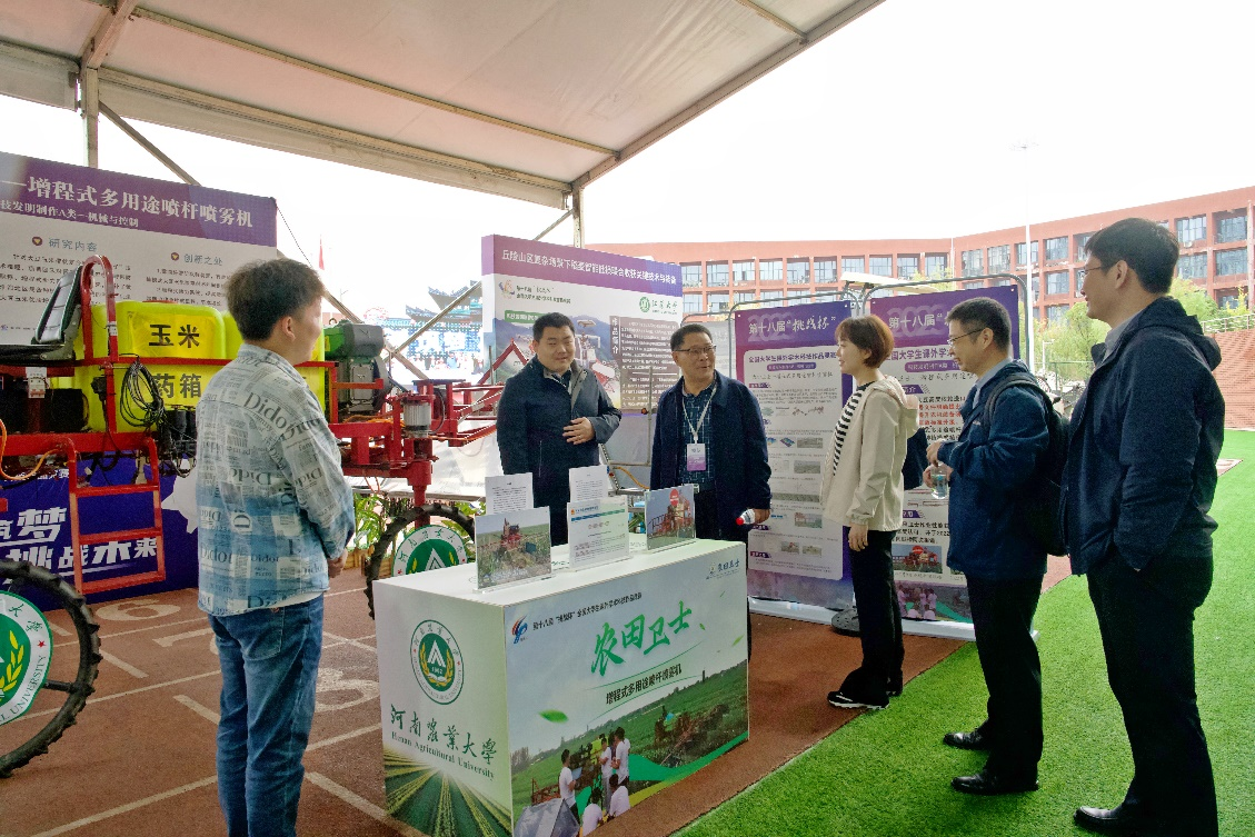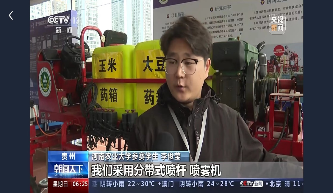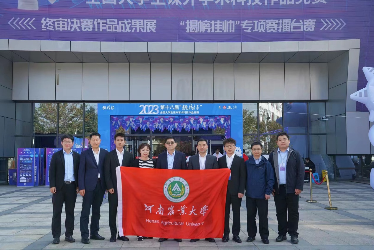 终审决赛期间,校、院领导高度重视,副校长郭战伟、校团委书记贾云飞、院长胡建军、院党委副书记宋晶、副院长王振锋亲临赛场,慰问指导新葡京娱乐城App 参赛师生,详细了解参赛情况并提出宝贵建议,对参赛队员的精心准备和努力付出给予高度评价,并鼓励大家要全力以赴,勇创佳绩。最终,经过激烈角逐,新葡京娱乐城App 崔功佩老师指导、李俊莹等同学参加项目《农田卫士——增程式多用途喷杆喷雾机》在科技发明制作类项目中取得新葡京娱乐城App 历史性突破,荣获国赛二等奖,被中央电视台专题报道。充分彰显了新葡京娱乐城App 学子崇尚科学、追求真知、锐意创新的青春风貌。