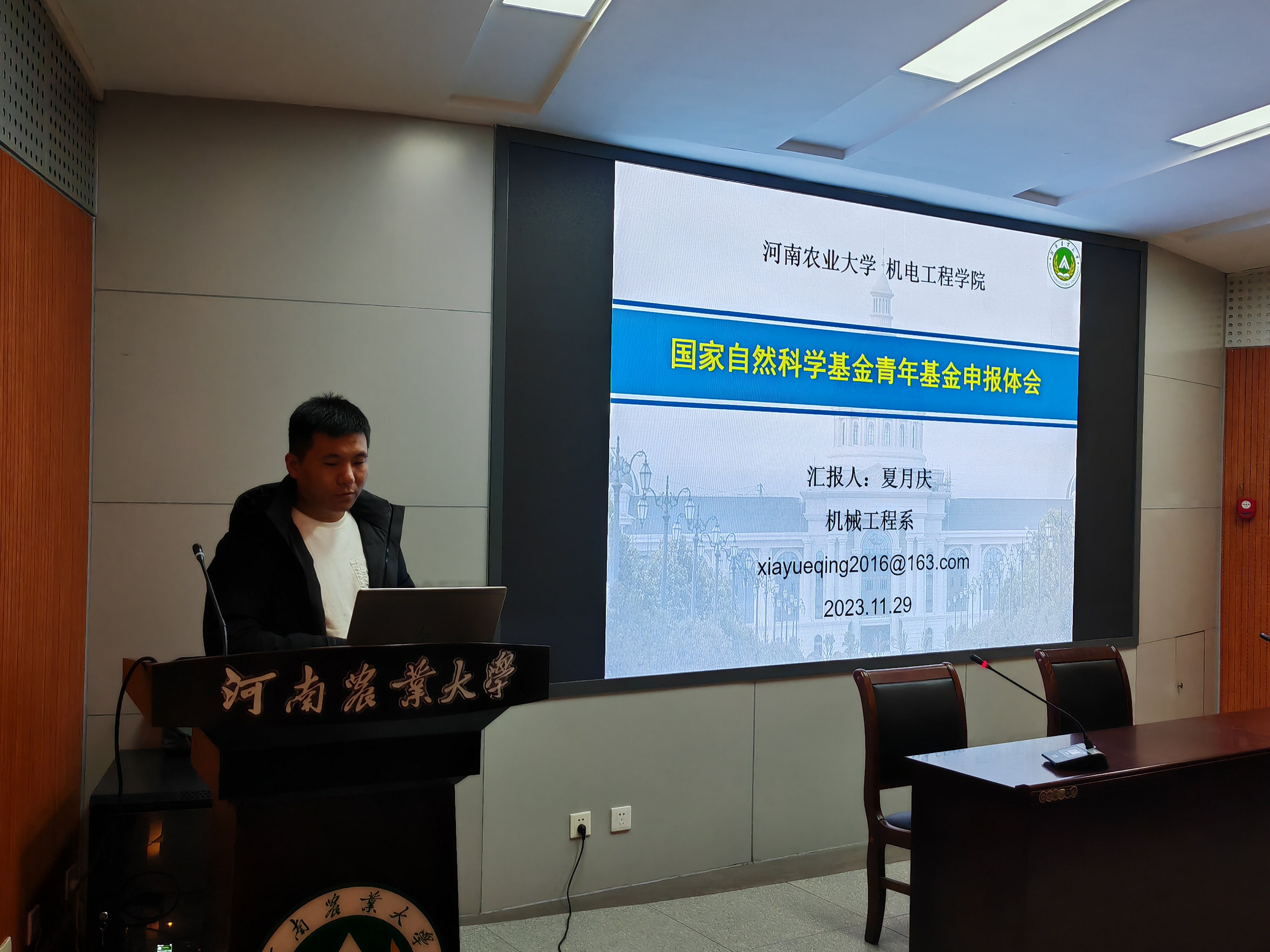 在2023年度国家自然科学基金申报过程中的努力与成果。以他自身的基金申报经历激励老师们要将基金撰写作为一项长期工作,特别是新进博士教师要尽快将自己的研究方向与新葡京娱乐城App