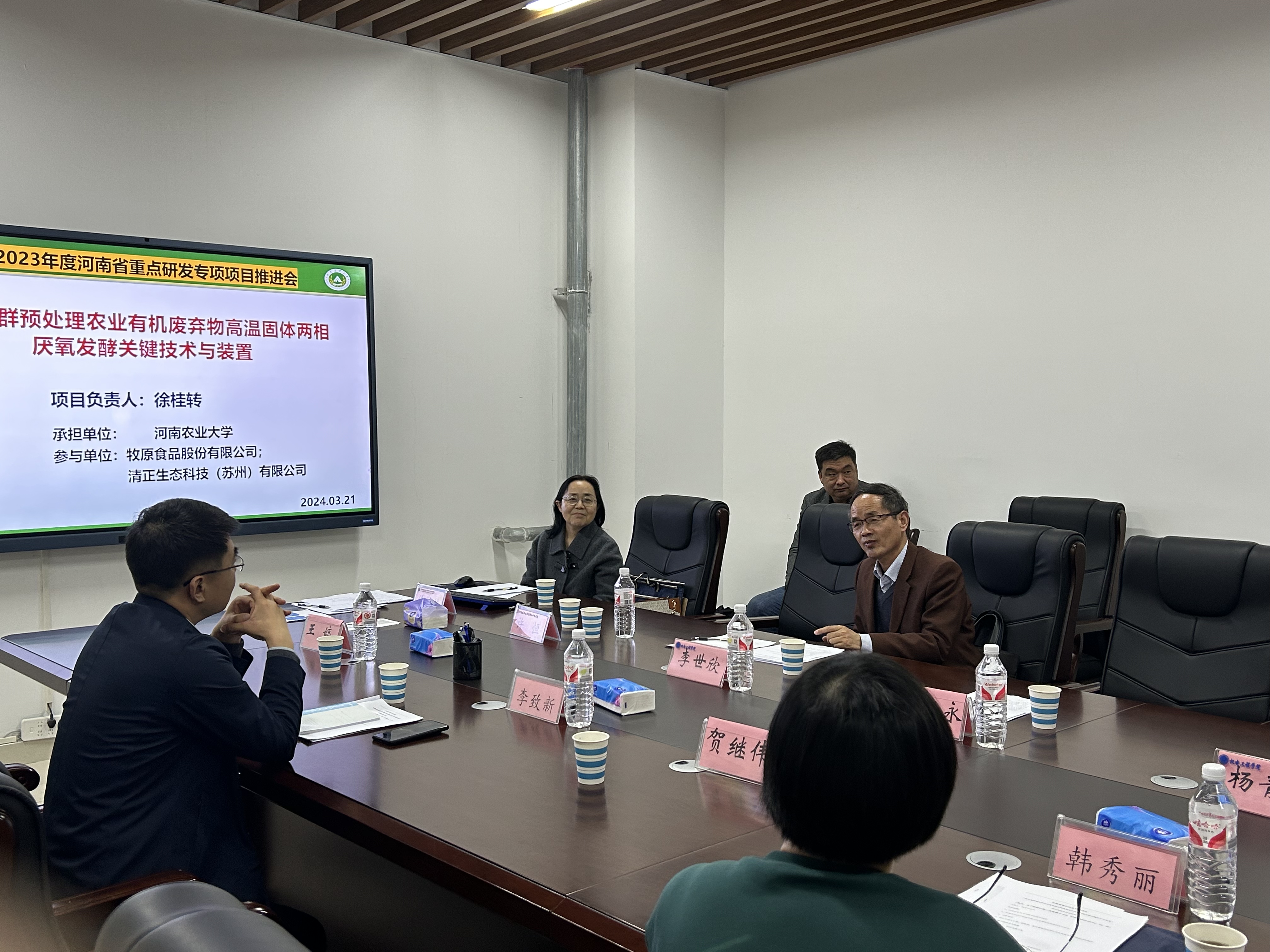 河南省科技厅现代农业农村科技处李锦辉处长和资源环境与社会事业处贺继伟处长分别对李连豪副教授和徐桂转教授带领的团队获得河南省重点研发专项立项表示祝贺,并强调这2个项目对我省经济社会发展的重要性,希望新葡京娱乐城App 尽到牵头单位的保障责任,也希望项目团队对标申报指南、对标绩效考核目标,确保项目安全顺利推进。