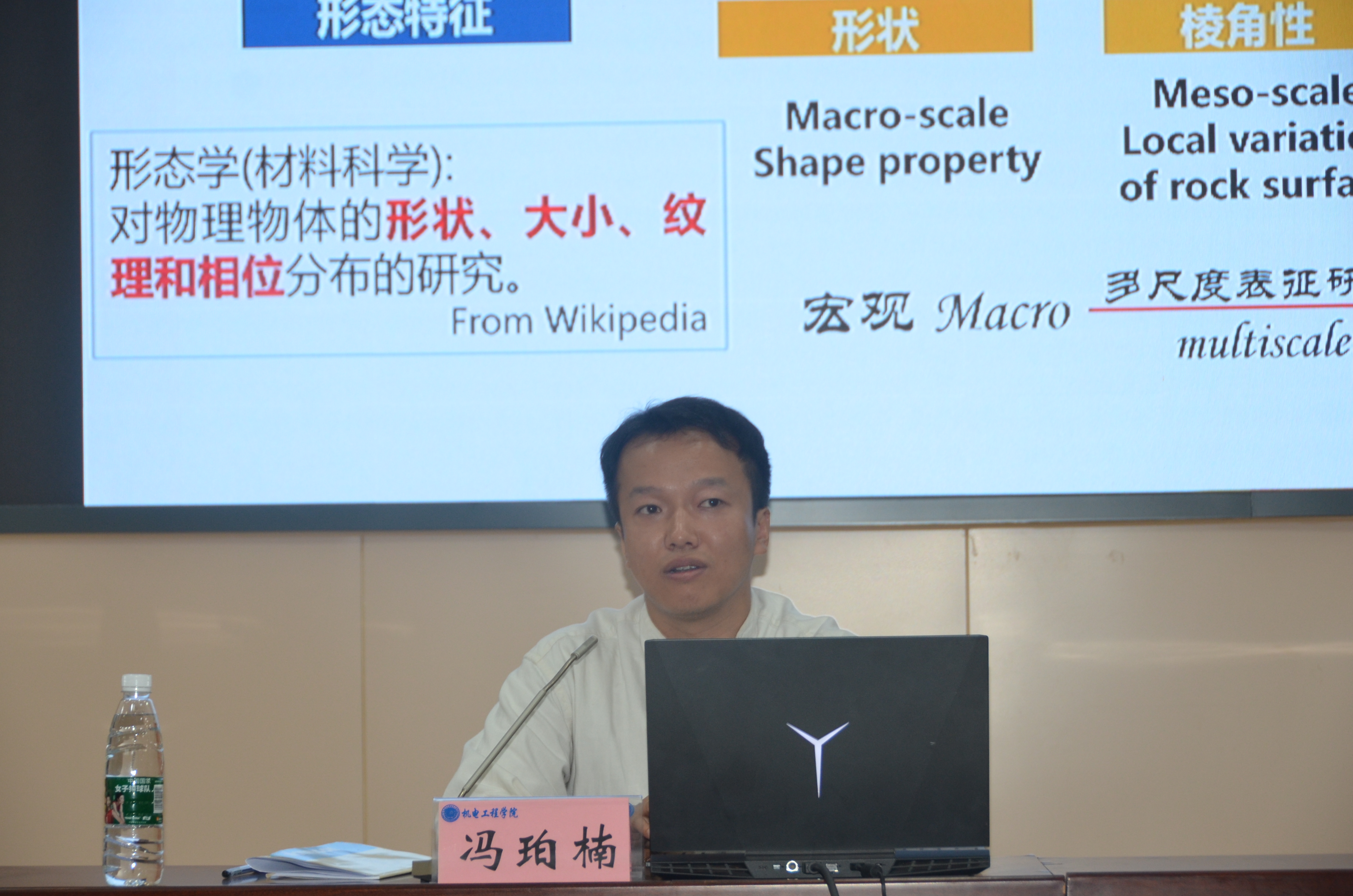 冯珀楠为研究生作主题为“基于粗集料细微观形态表征的沥青混合料力学特性研究”的学术报告,他针对路用粗集料形态表征方法研究、基于集料形态的沥青混合料界面性能研究和沥青混合料界面作用行为分子模拟研究三个方面对当前研究内容作报告。在科研经验方面,冯珀楠分享了他在科研和学习中的思考和感悟,就如何在有限时间内得到更好的成果向同学们传授相关经验,并从专业角度解答了同学们将来读博和工作选择方面的问题。最后,李锦对本次讲坛进行总结,号召同学们学习冯老师的科研精神,勉励同学们遇到困难不要气馁,顺利研磨出自己的优质论文,永不言败方能成就无悔青春。