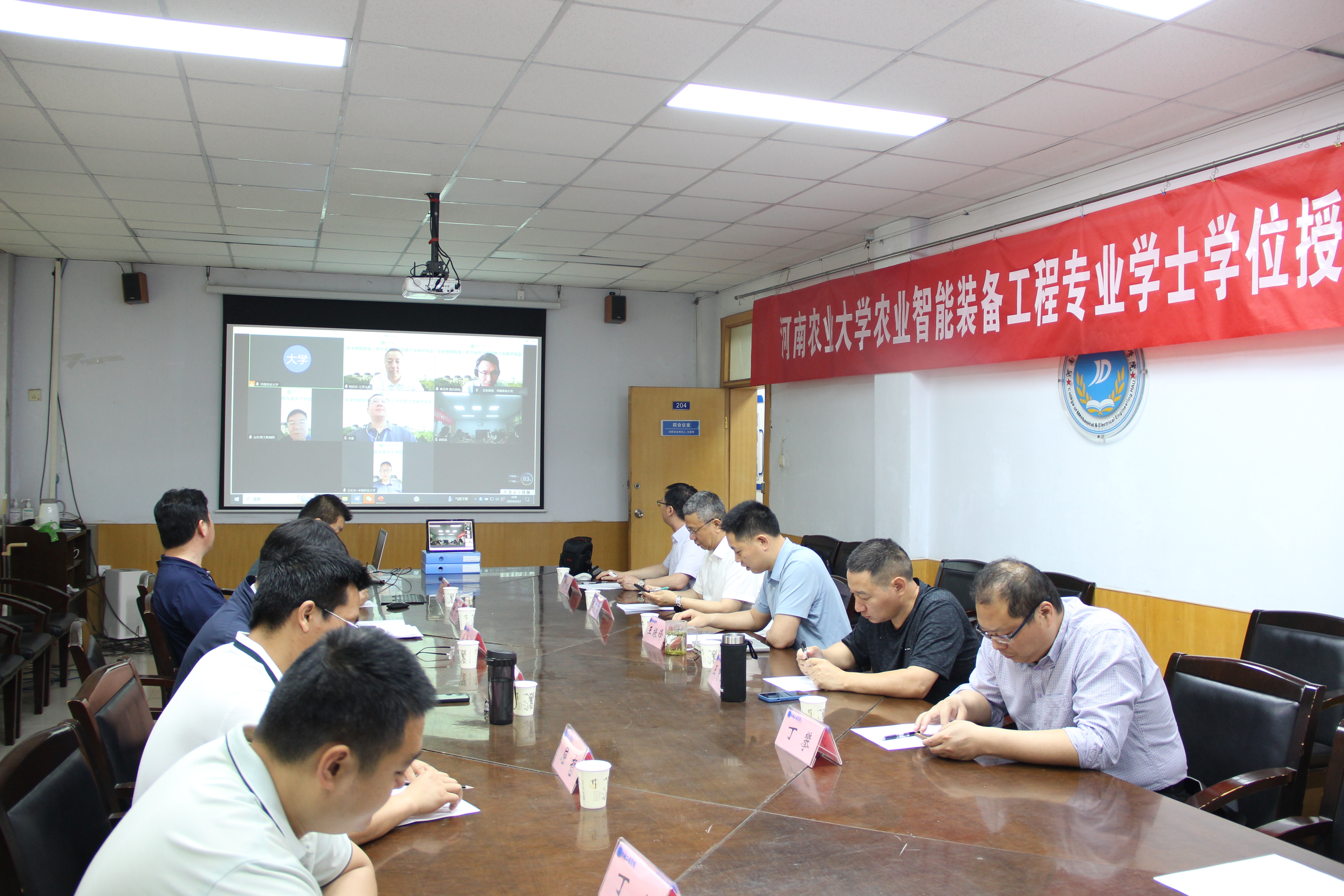 在二楼会议室采用线上线下相结合方式召开了农业智能装备工程学士学位授予专业授权评审会。邀请中国农业大学王庆杰教授、西北农林科技大学黄玉祥教授、华南农业大学李震教授、江苏大学杨启志教授和山东理工大学耿端阳教授担任评审专家。副院长王振锋,农业智能装备工程专业负责人王万章教授,农业机械系、机械工程系、电气工程系负责人及相关专业骨干教师参加会议。