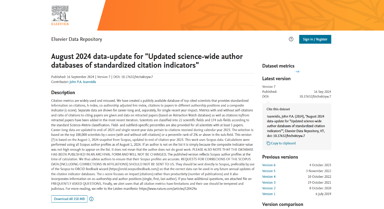 该榜单由斯坦福大学John P.A. Ioannidis教授团队联合国际权威学术出版社爱思唯尔发布,基于全球约一千万科学家的论文引用数、h指数(全称“H-index”,用于评估研究人员的学术产出数量与学术产出水平)、合著者调整的hm指数、单独或第一作者的文章引用数等综合参数,反映科学家的产出量和学术影响力,收录了来自22个学科领域、174个子学科领域全球排名2%的科学家。