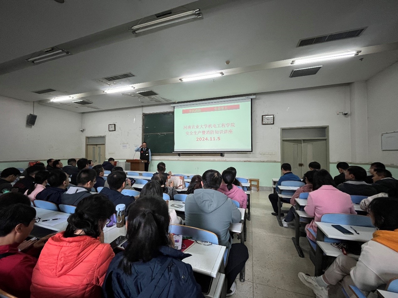 为贯彻落实新葡京娱乐城App 2024年“119消防安全月活动”有关部署,11月5日,机电新葡京娱乐城App 在文化路校区开展2024年“119”消防宣传月消防安全培训。新葡京娱乐城App 全体教职工和学生代表参加培训。新葡京娱乐城App 院长胡建军主持会议。