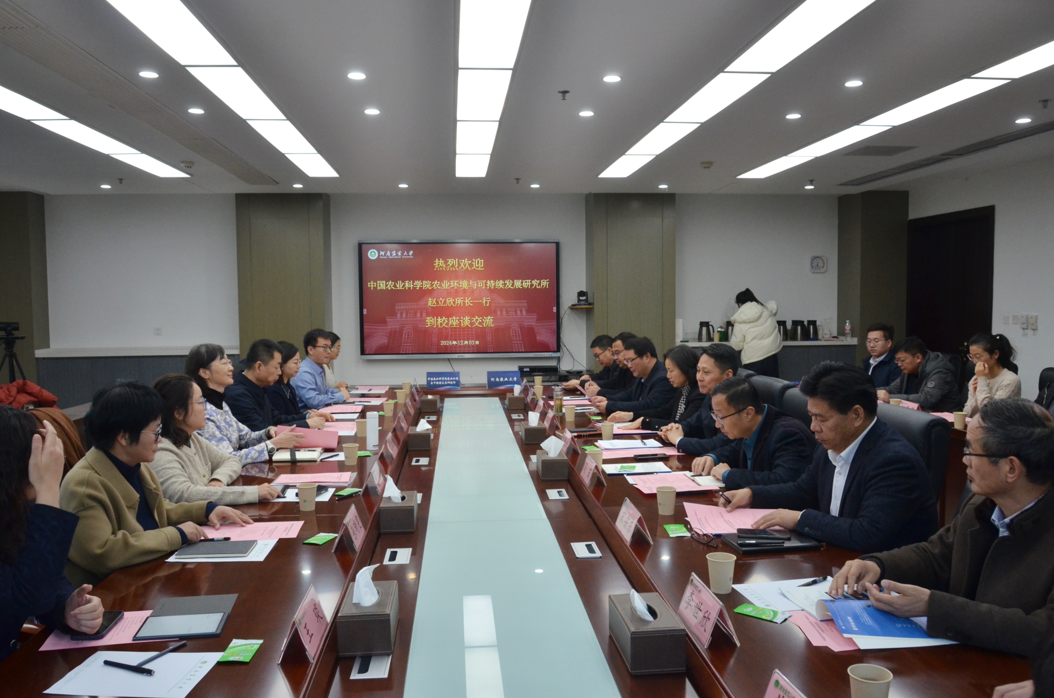 赵立欣介绍了农业环境与可持续发展研究所的基本情况。她指出,近年来,国家加快农业强国建设,大力推进农业绿色低碳发展,农业资源环境保护利用与农村人居环境等研究也迎来了重大发展机遇期。他希望双方今后要加大交流合作力度,充分发挥各自优势开展联合攻关,共同在科技成果产出、人才培养、科研成果转化、科技平台管理等方面取得更大进展,为农业农村绿色低碳发展工作提供强有力的技术支撑。