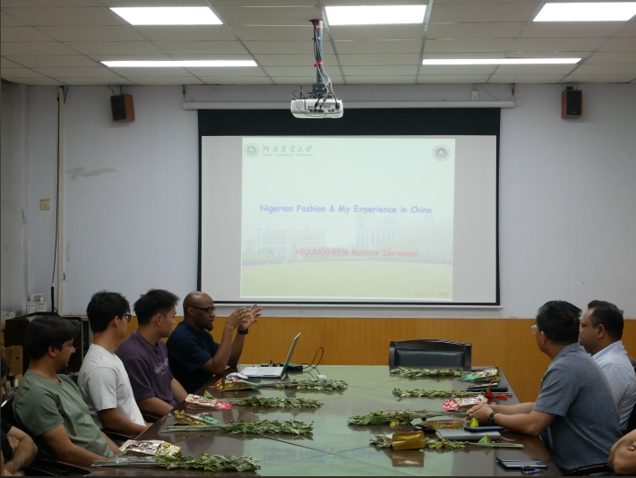 对全体留学生致以节日问候,随后介绍了端午节的起源、习俗及其蕴含的爱国精神与民族情感。研究生代表展示了吃粽子、赛龙舟、挂香囊等端午节的传统习俗,让留学生们感受中华传统节日的深厚内涵和文化魅力。之后,留学生们纷纷化身 “文化宣讲员”,通过精心制作的 PPT,向大家介绍自己国家的文化,并与在场师生积极畅谈在校学习和生活的感受。