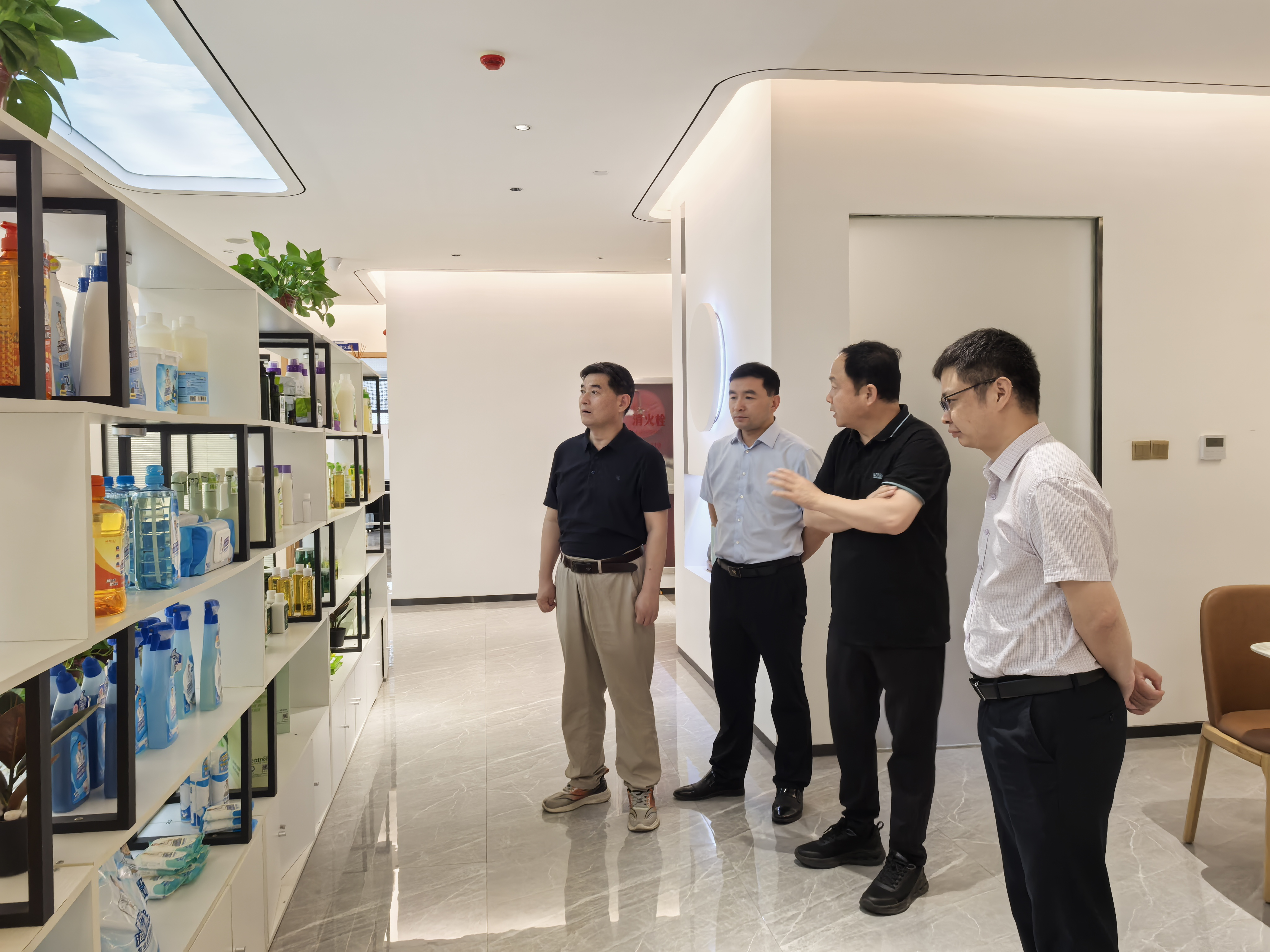 期间,贾云飞、李炳军一行在汤培远陪同下参观了皮肤健康研究中心、植物精油抗菌实验室、天然香氛实验室、空气降解与消毒实验室、精细化学实验室。(文/图:兰明明 审核:宋晶)
